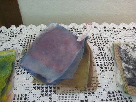 会場にはちぎり絵に使用した様々な和紙を手にとっても見ることができ、作品が和紙固有の模様やしわをいかしてつくられていることがわかりました。
