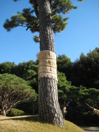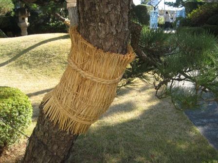 松の剪定にくる師匠によると…藁でできているこの腹巻のようなものは、虫の寝床のために巻かれたものなのだそうです。