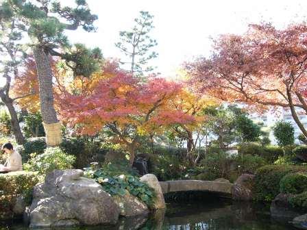上の写真は12月17日の庭園風景です。深い赤色に紅葉したもみじがとてもきれいです。