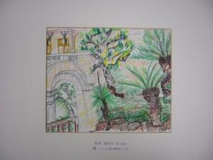 スケッチ大会参加者の作品紹介④ 投稿日: 2011年12月17日 投稿者: 千葉市民ギャラリー・いなげ カテゴリー: 1 千葉市民ギャラリー・いなげ、1_3 イベント スケッチ大会参加者の作品紹介も4回目を迎えました。 遅くなりましたが、いよいよ最後の5名の作品をご紹介します。 別荘付近に生えるソテツを豪快に描いた作品。ザクザクとした木肌がクレヨンでよく表現されています。 一本一本描き込まれた松の葉が迫力ある作品。木で支えられている松もよく描かれています。 庭園の池と周囲にうっそうと茂る植物を緻密に描いた作品。強かなギャラリーの鯉がよく現れています。 庭園に咲く花に着目した唯一の作品。これは小僧の彫刻の近くに咲くインパチェンスのようです。 細かな装飾が施された別荘を繊細なタッチで表した作品。 実物よりも繊細で素敵に見えます。 計4回にわたって紹介してきた作品は、現在千葉市民ギャラリー・いなげのロビーにて展示しています。 庭園の紅葉と合わせて足を運んでくださるとうれしいです。 【旧神谷伝兵衛稲毛別荘スケッチ展】開催中! 期日:平成23年12月1日(木)~1月8日(日) 場所:千葉市民ギャラリー・いなげ1Fロビー&廊下 yuki 共有: クリックして X で共有 (新しいウィンドウで開きます) X Facebook で共有するにはクリックしてください (新しいウィンドウで開きます) Facebook クリックして LinkedIn で共有 (新しいウィンドウで開きます) LinkedIn クリックして Tumblr で共有 (新しいウィンドウで開きます) Tumblr クリックして Pinterest で共有 (新しいウィンドウで開きます) Pinterest クリックして友達にメールでリンクを送信 (新しいウィンドウで開きます) メールアドレス いいね 読み込み中… 関連
