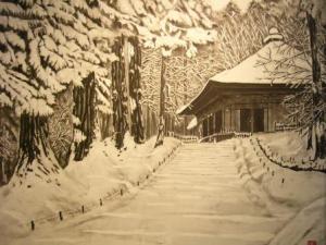 上の作品は会のメンバー・堀川さんが描いた中尊寺です。