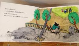 イラストは一枚一枚絵の輪郭だけを黒の版画ですり、水彩絵の具で彩色した独特の風合いが印象に残りました。