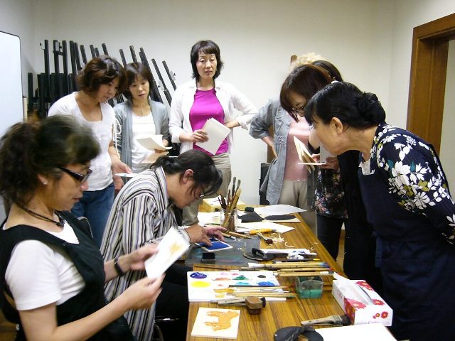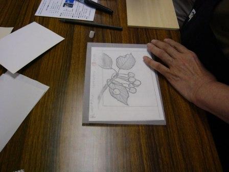 実演が終わった後は、参加者それぞれが、刷ったときにどのような作品に仕上がるかをイメージしながら下絵づくりを始めます。ここが大きな分かれ道で、一版一色刷り・一版多色刷り・二版多色刷り…皆さん悩みながら下絵を考えていました。