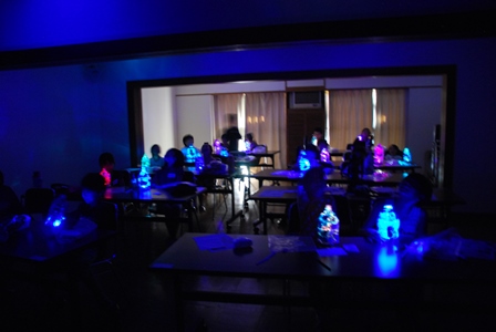 完成後はライトを入れて、灯ろうから光が漏れる様子を楽しみました。