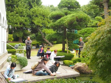 親子、家族、ご友人同士、ふらっとギャラリーに訪れた方など、多くのみなさんが庭園や旧神谷別邸を思い思いにスケッチされました。