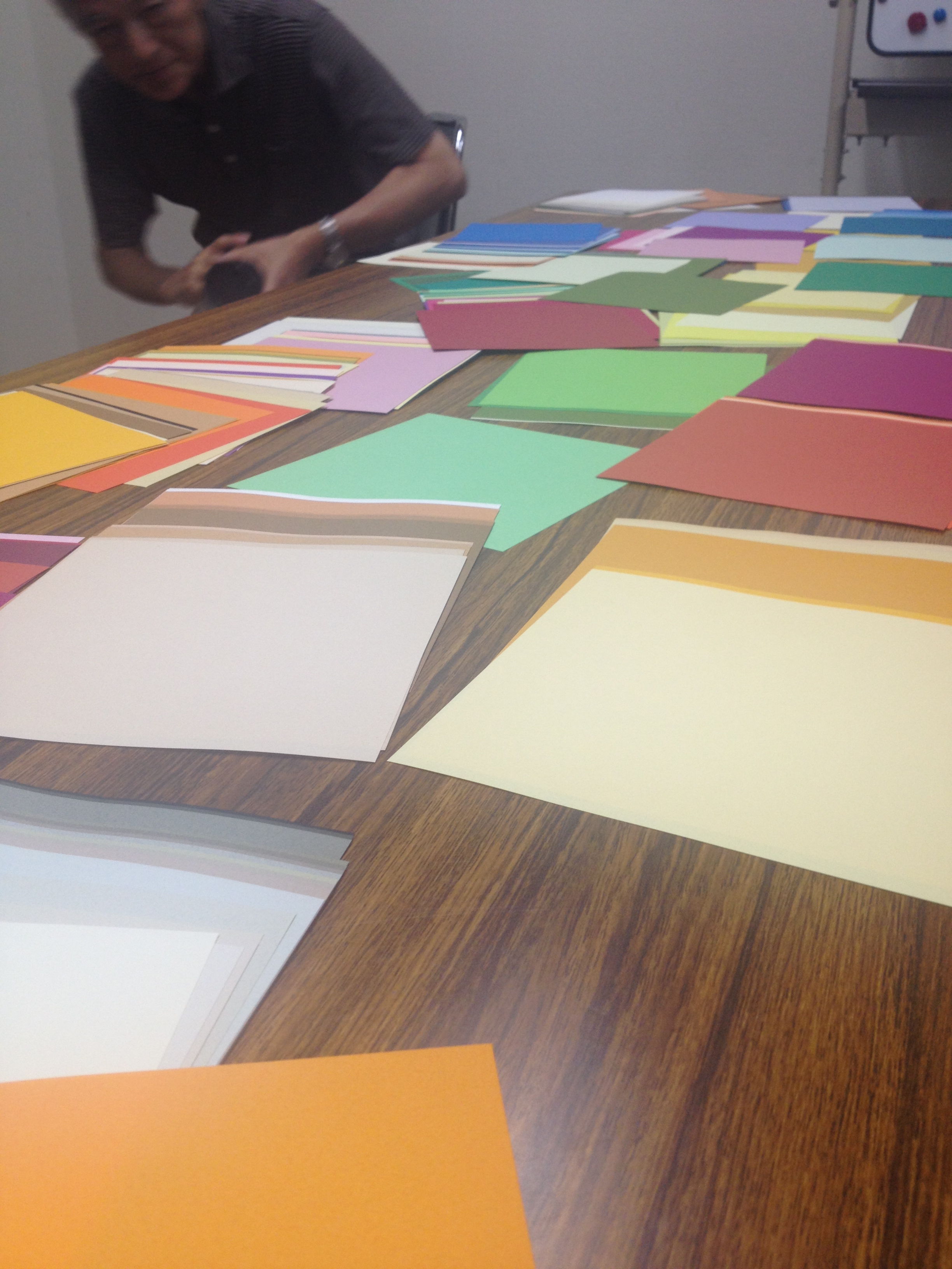 最後に自分の気に入った模様の折り紙を2つ選び、それらに合う色の台紙と組み合わせて作品が完成しました。