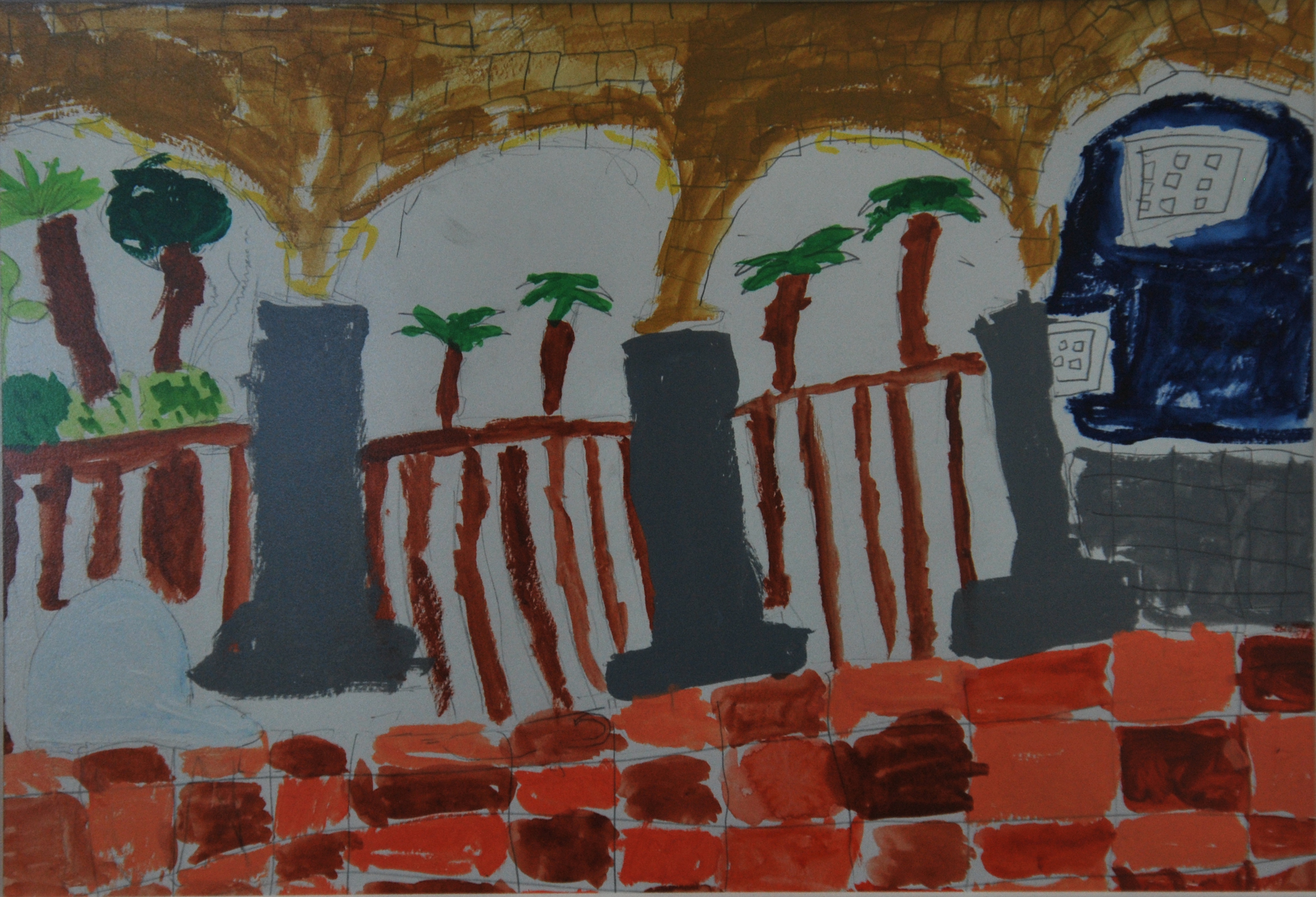 神谷別邸を描く、別邸から見た風景を描く、庭園の草花や池の鯉を描く、描いている子の姿を描く…