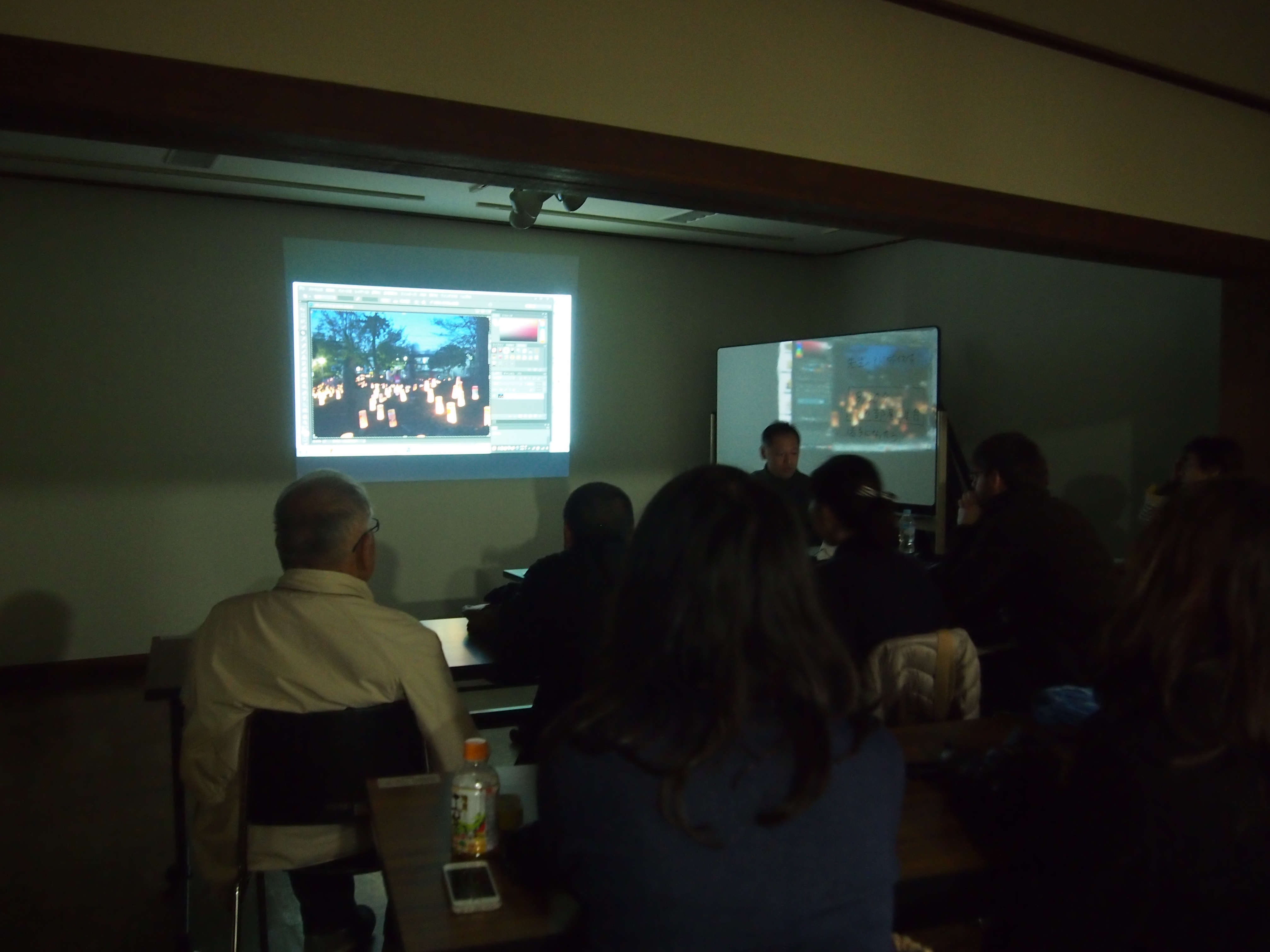 参加者の皆さんは、夜灯まつりをまわりながら様々な場面を切り取り、最後の講評会では佐藤さんのお話を熱心に聞いていました。