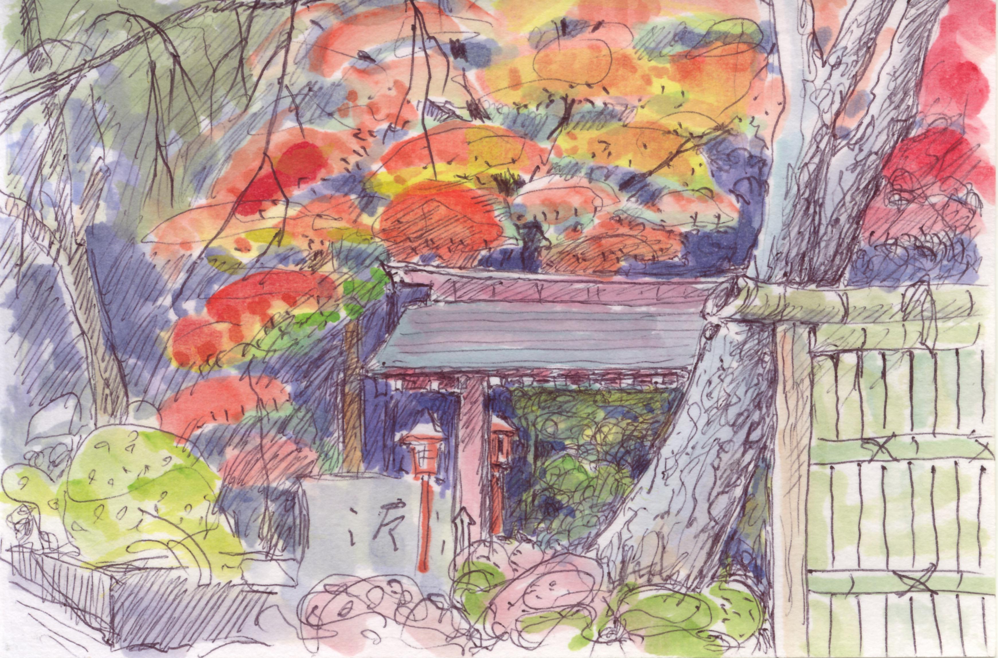 現場まで足を運び描いている花香さんのスケッチは、その場の静けさや神聖さが伝わってくるようでした。
