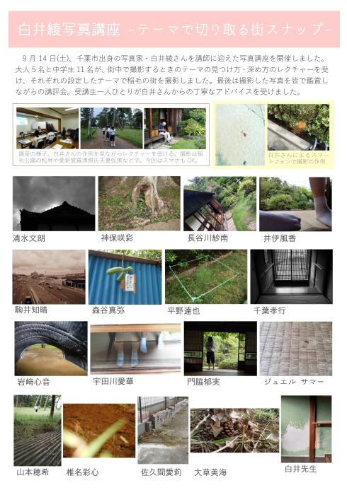 【報告】白井綾写真講座~テーマで切り取る街スナップ~ 投稿日: 2019年9月23日 投稿者: 千葉市民ギャラリー・いなげ カテゴリー: 活動報告 共有: クリックして X で共有 (新しいウィンドウで開きます) X Facebook で共有するにはクリックしてください (新しいウィンドウで開きます) Facebook クリックして LinkedIn で共有 (新しいウィンドウで開きます) LinkedIn クリックして Tumblr で共有 (新しいウィンドウで開きます) Tumblr クリックして Pinterest で共有 (新しいウィンドウで開きます) Pinterest クリックして友達にメールでリンクを送信 (新しいウィンドウで開きます) メールアドレス いいね 読み込み中… 関連