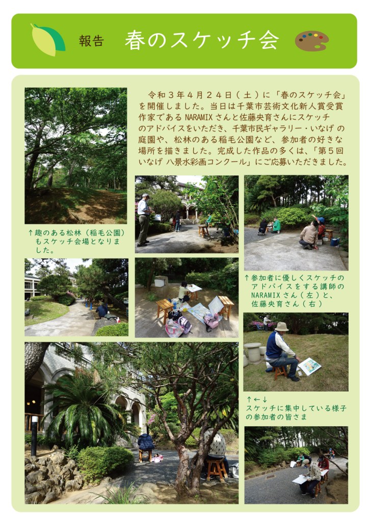 【報告】2021年 春のスケッチ会 投稿日: 2021年5月11日 投稿者: 千葉市民ギャラリー・いなげ カテゴリー: 活動報告 共有: クリックして X で共有 (新しいウィンドウで開きます) X Facebook で共有するにはクリックしてください (新しいウィンドウで開きます) Facebook クリックして LinkedIn で共有 (新しいウィンドウで開きます) LinkedIn クリックして Tumblr で共有 (新しいウィンドウで開きます) Tumblr クリックして Pinterest で共有 (新しいウィンドウで開きます) Pinterest クリックして友達にメールでリンクを送信 (新しいウィンドウで開きます) メールアドレス いいね 読み込み中… 関連