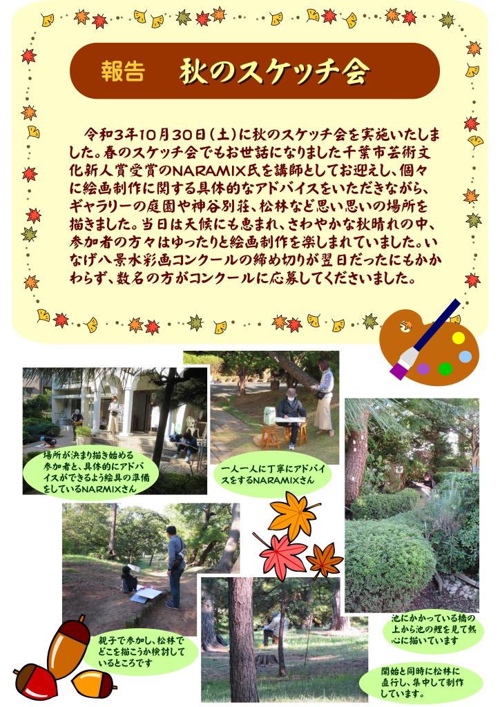 【報告】秋のスケッチ会 投稿日: 2021年12月8日 投稿者: 千葉市民ギャラリー・いなげ カテゴリー: 活動報告 共有: クリックして X で共有 (新しいウィンドウで開きます) X Facebook で共有するにはクリックしてください (新しいウィンドウで開きます) Facebook クリックして LinkedIn で共有 (新しいウィンドウで開きます) LinkedIn クリックして Tumblr で共有 (新しいウィンドウで開きます) Tumblr クリックして Pinterest で共有 (新しいウィンドウで開きます) Pinterest クリックして友達にメールでリンクを送信 (新しいウィンドウで開きます) メールアドレス いいね 読み込み中… 関連
