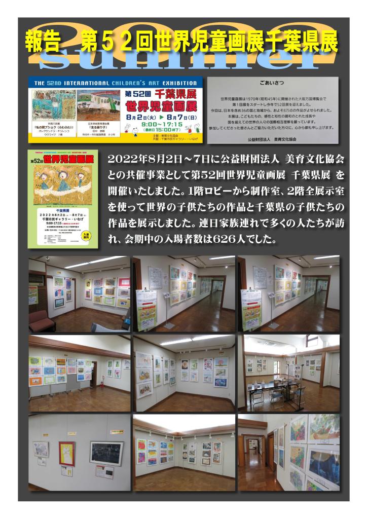 【報告】 第52回世界児童画展 千葉県展 投稿日: 2022年8月13日 投稿者: 千葉市民ギャラリー・いなげ カテゴリー: 活動報告 共有: クリックして X で共有 (新しいウィンドウで開きます) X Facebook で共有するにはクリックしてください (新しいウィンドウで開きます) Facebook クリックして LinkedIn で共有 (新しいウィンドウで開きます) LinkedIn クリックして Tumblr で共有 (新しいウィンドウで開きます) Tumblr クリックして Pinterest で共有 (新しいウィンドウで開きます) Pinterest クリックして友達にメールでリンクを送信 (新しいウィンドウで開きます) メールアドレス いいね 読み込み中… 関連