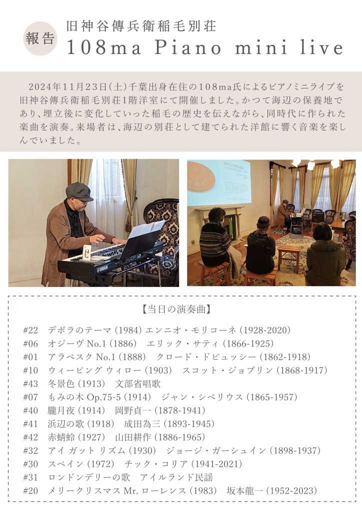 【報告】 神谷別荘ピアノミニライブ 投稿日: 2025年3月15日 投稿者: 千葉市民ギャラリー・いなげ カテゴリー: 活動報告 共有: クリックして X で共有 (新しいウィンドウで開きます) X Facebook で共有するにはクリックしてください (新しいウィンドウで開きます) Facebook クリックして LinkedIn で共有 (新しいウィンドウで開きます) LinkedIn クリックして Tumblr で共有 (新しいウィンドウで開きます) Tumblr クリックして Pinterest で共有 (新しいウィンドウで開きます) Pinterest クリックして友達にメールでリンクを送信 (新しいウィンドウで開きます) メールアドレス いいね 読み込み中… 関連